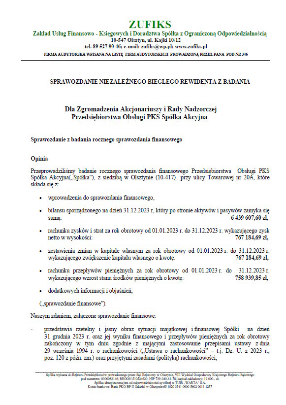 Sprawozdanie z badania rocznego sprawozdania finansowego